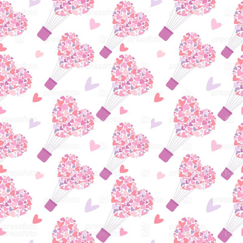 Бесшовный узор из розовых шаров в форме сердец на День святого Валентина для открыток, текстиля, декора, плакатов. Векторная иллюстрация