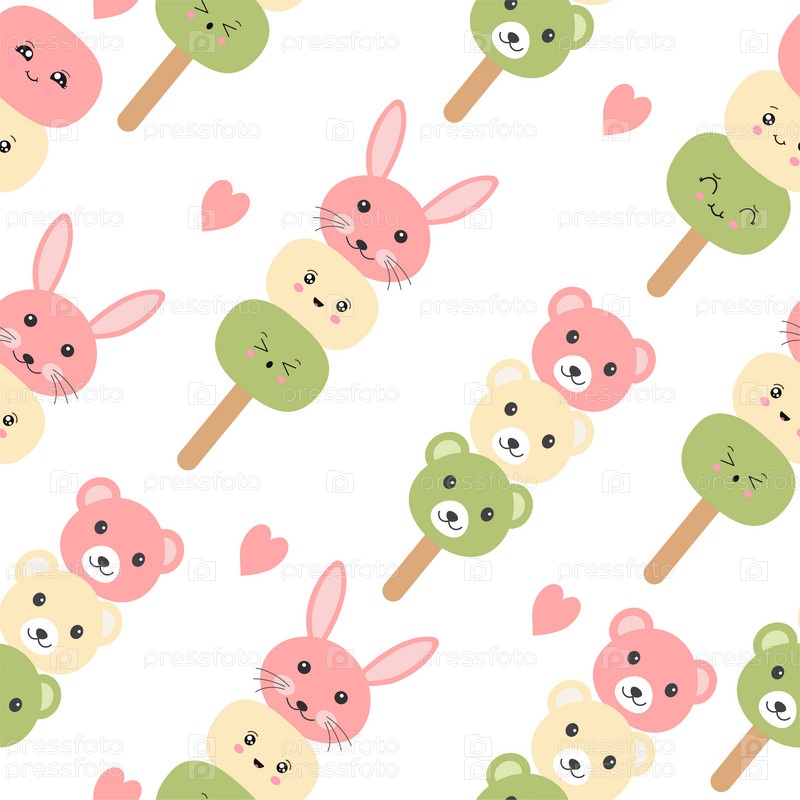 Бесшовный узор из японского десерта данго. Вектор японского десерта Данго
