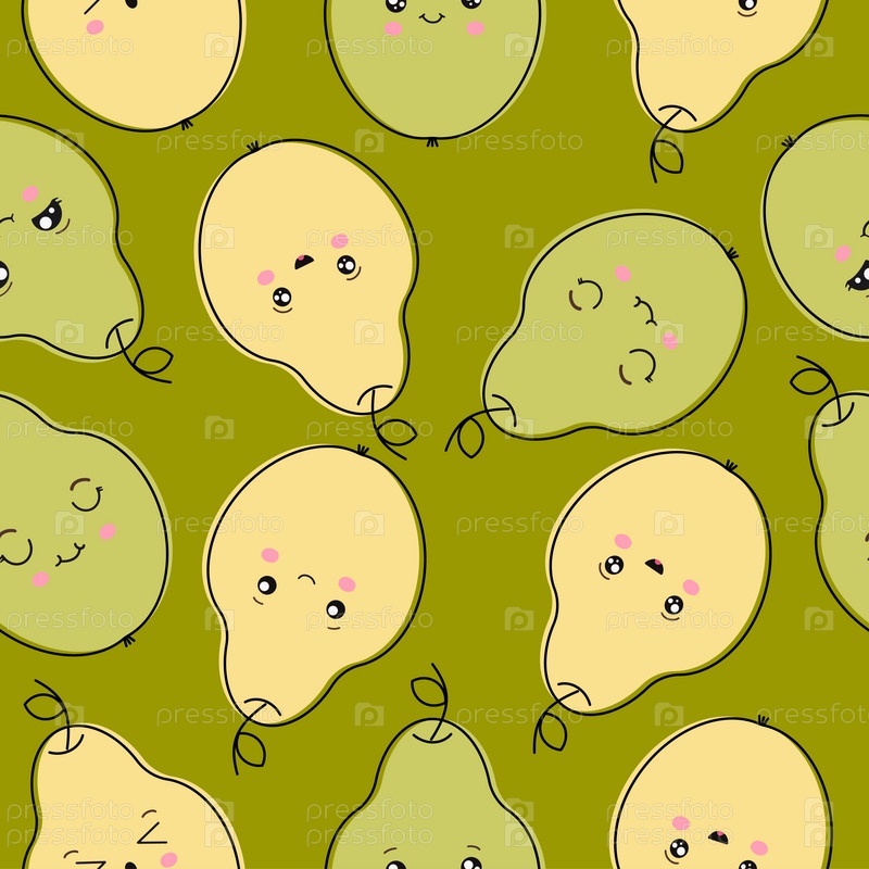 Бесшовный узор из зеленых и желтых груш. Векторная иллюстрация для вашего дизайна