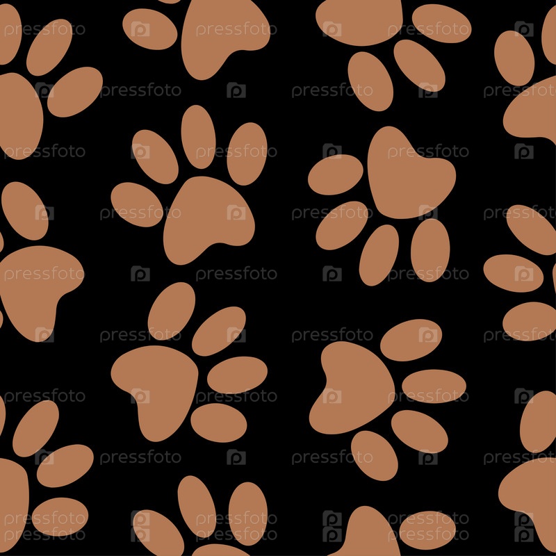 Бесшовный рисунок лап животных. Отпечатки лап. Значок щенка собаки и кошки. Следы домашнего питомца