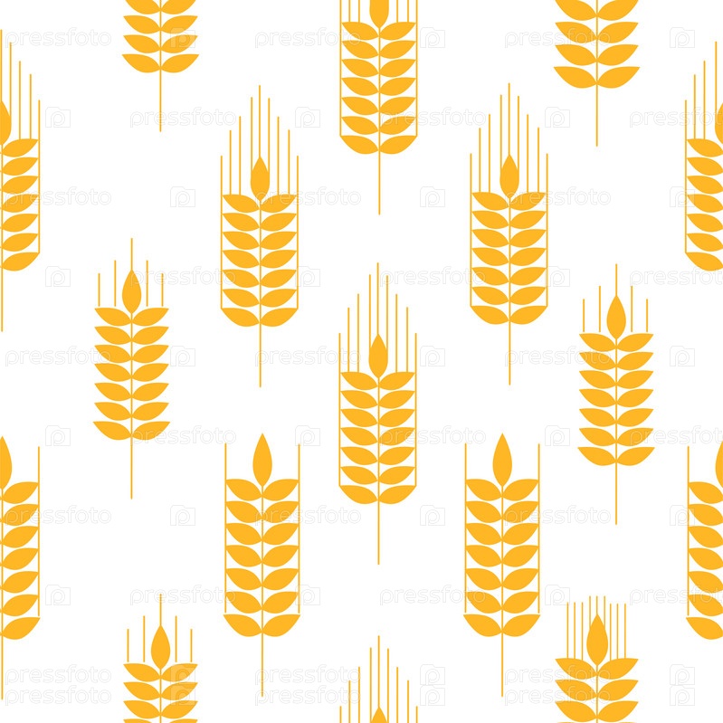 Бесшовный узор из золотых спелых колосков пшеницы. Сельскохозяйственный символ, производство муки. Векторный силуэт пшеницы. Иллюстрация на белом фоне