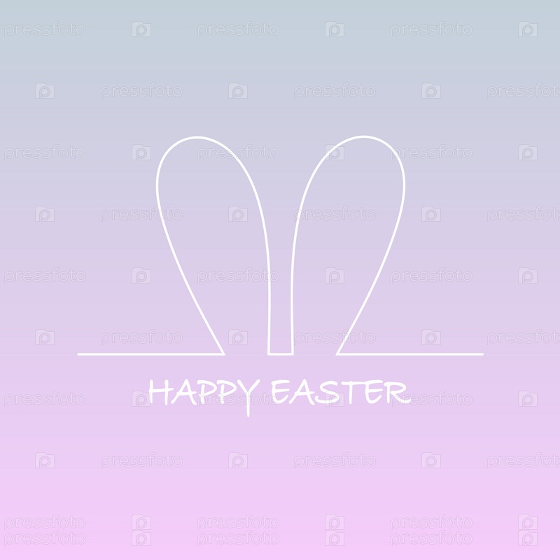 Симпатичные кроличьи уши в одну линию и надпись счастливой пасхи. Пасхальная открытка. Векторная иллюстрация