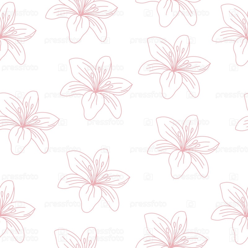 Бесшовный узор из лилий. Красивая нежная лилия. Векторная иллюстрация на белом фоне