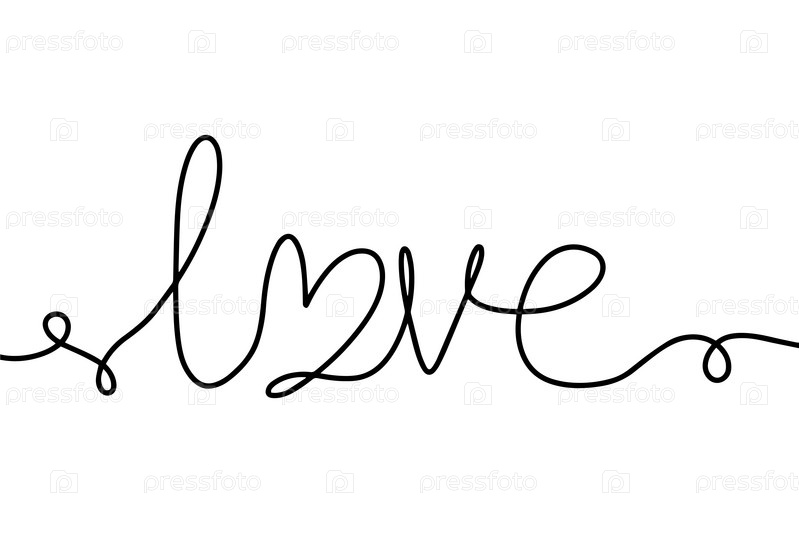 Непрерывное рисование надписи любовь. Модная минималистская иллюстрация. Рисование одной линией