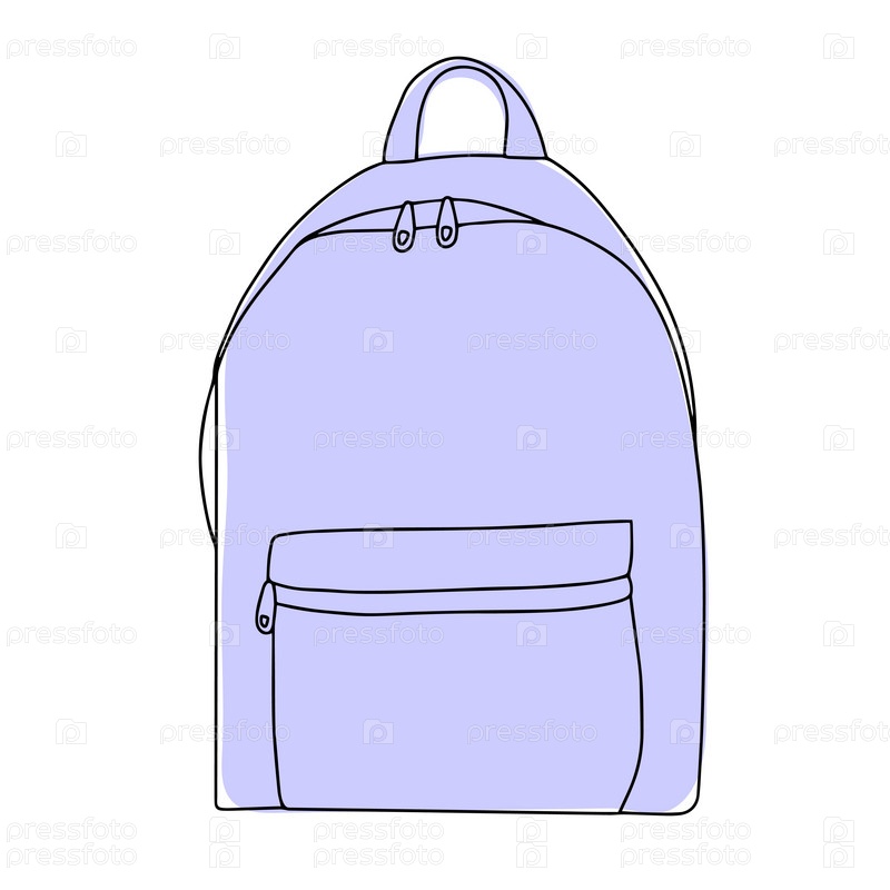 Рюкзак. Школьный портфель. Рисование в одну линию. Векторная иллюстрация на белом фоне