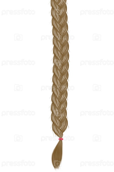 Модная коса с розовой резинкой - плоская растровая изолированная иллюстрация