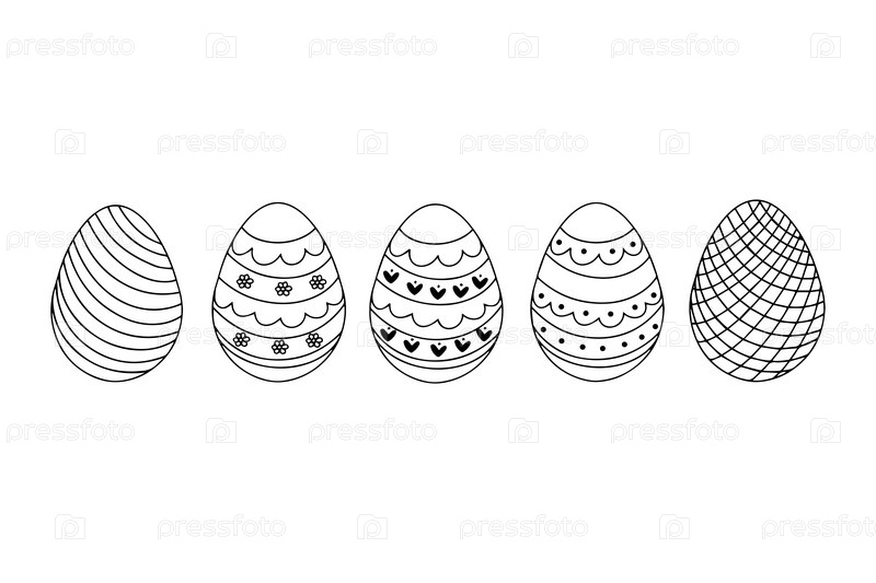 Черно-белые иконы яиц с орнаментом для украшения пасхальных праздников. Векторная иллюстрация на белом фоне