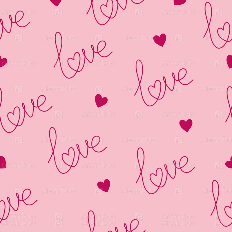 Бесшовный фон с надписью любовь. Модная минималистская иллюстрация. Рисование в одну линию