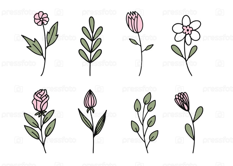 Набор плоских иконок с изображением весенних цветов, выделенных на белом фоне. Векторная иллюстрация