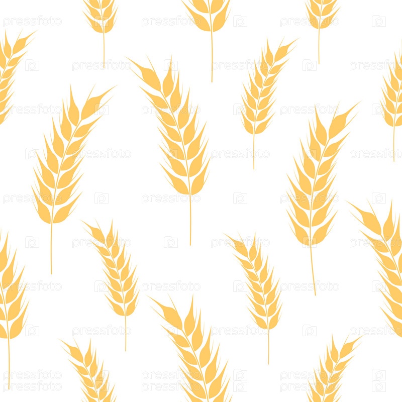Бесшовный узор из золотых спелых колосков пшеницы. Сельскохозяйственный символ, производство муки. Векторный силуэт пшеницы. Иллюстрация на белом фоне