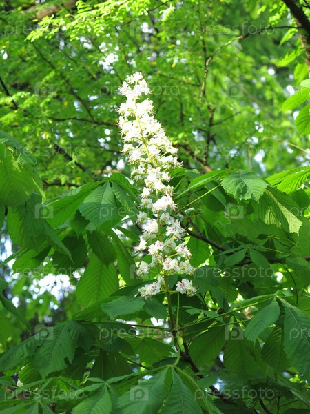 Цветущий каштан весной, белые соцветия напоминают свечи