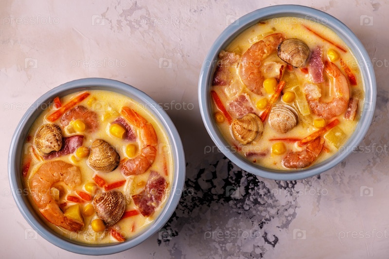 Домашняя похлебка из моллюсков с креветками