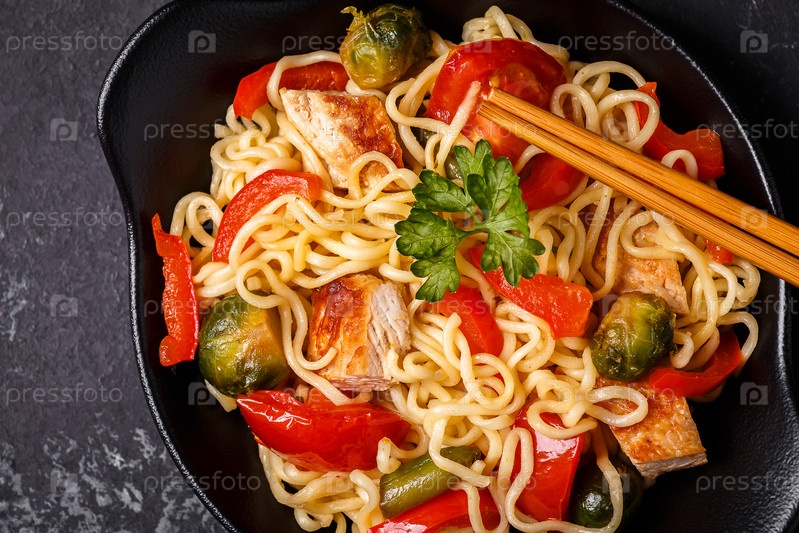Азиатская лапша с овощами и курицей
