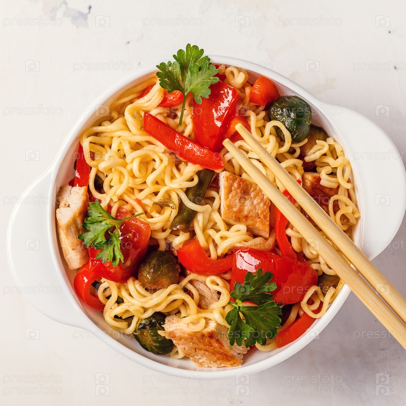 Азиатская лапша с овощами и курицей