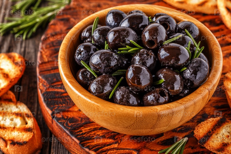 Свежие оливки с поджаренным багетом