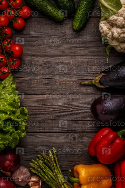 Свежие овощи для приготовления пищи на темном деревянном фоне
