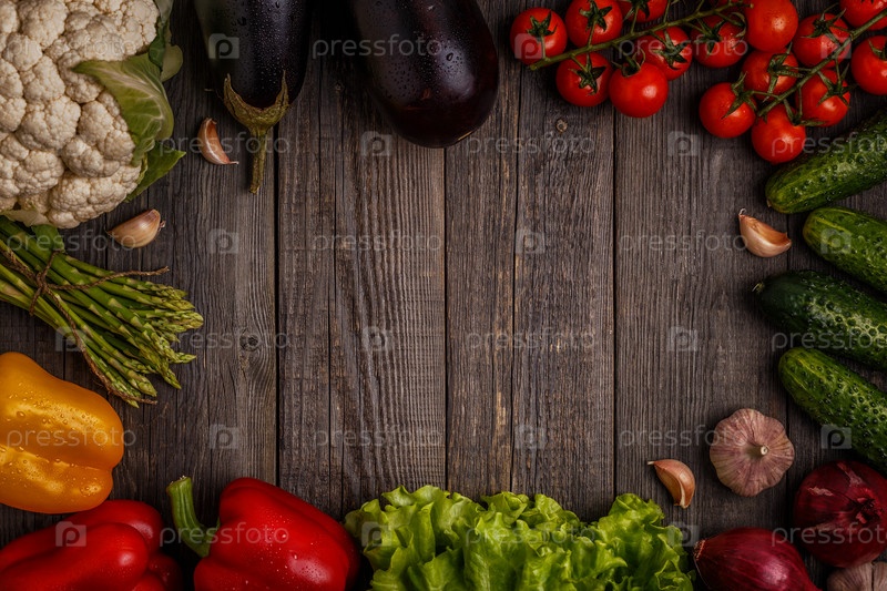 Свежие овощи для приготовления пищи на темном деревянном фоне