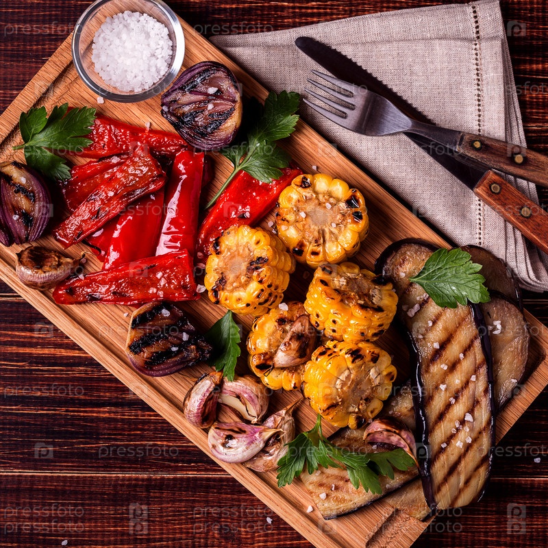 Жареные овощи на разделочной доске