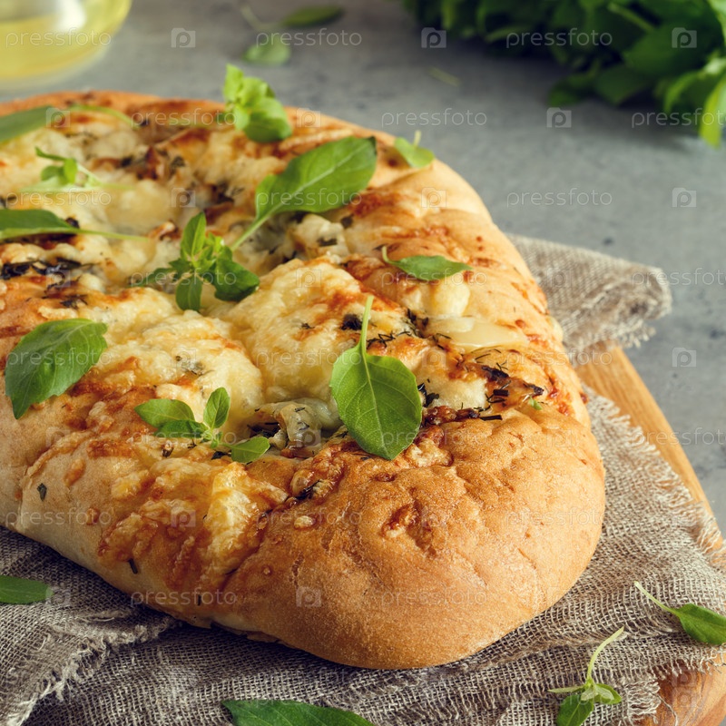 Фокачча с луком, зеленью и сыром
