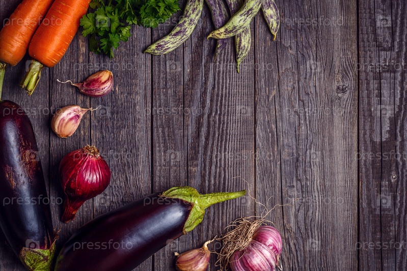 Свежие овощи для приготовления пищи на темном деревянном фоне с местом для текста