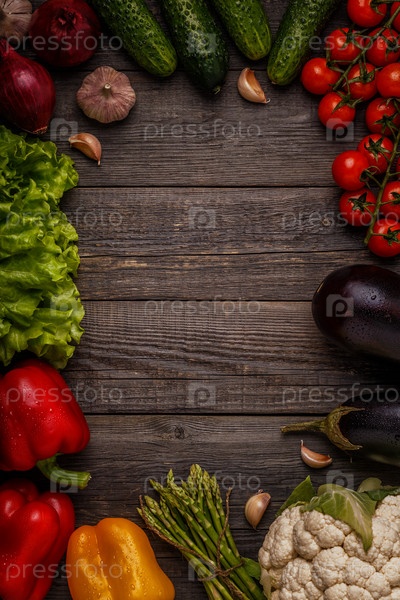 Свежие овощи для приготовления пищи на темном деревянном фоне