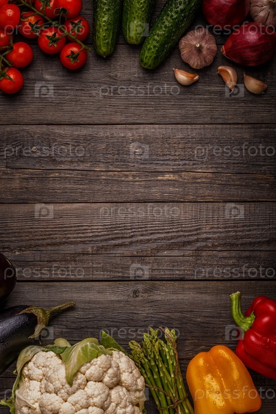 Свежие овощи для приготовления пищи на темном деревянном фоне
