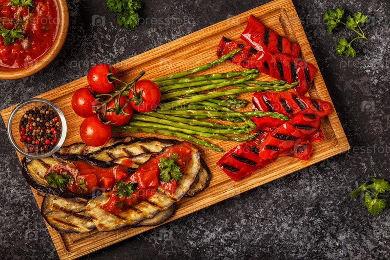 Овощи гриль с томатным соусом и свежей зеленью