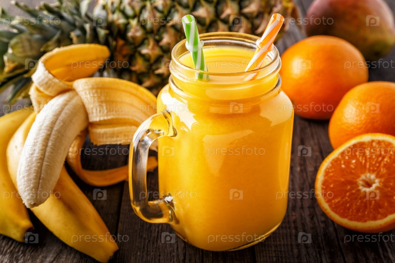 Стакан смузи с фруктами, выборочный фокус