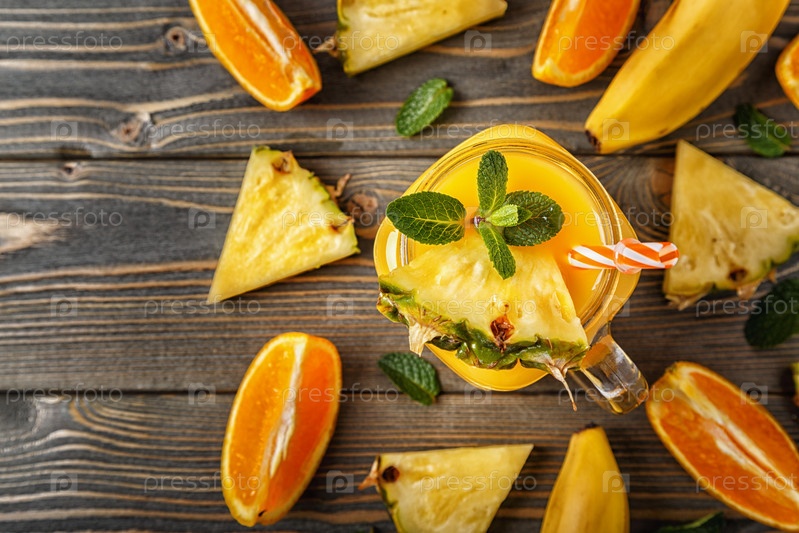 Стакан смузи с фруктами, выборочный фокус