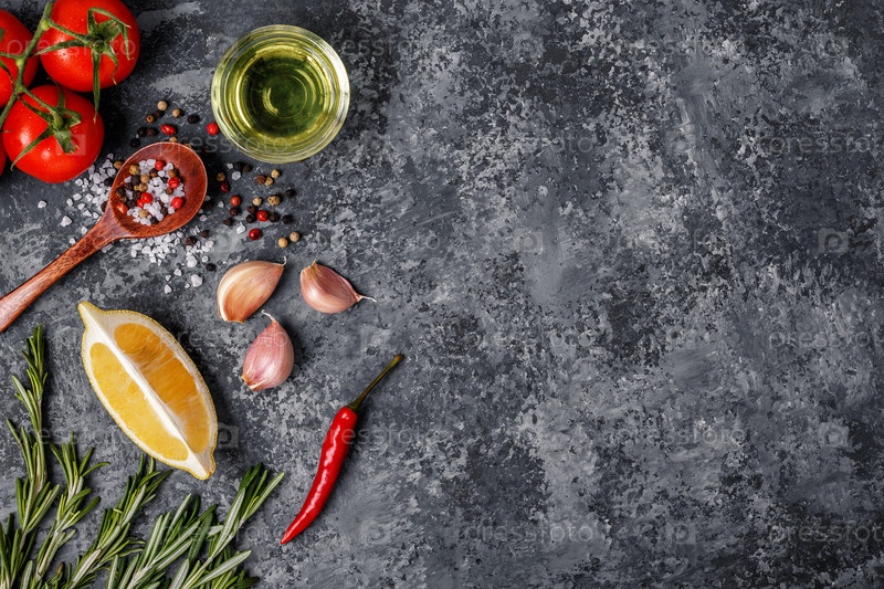 Фон со специями, травами и оливковым маслом