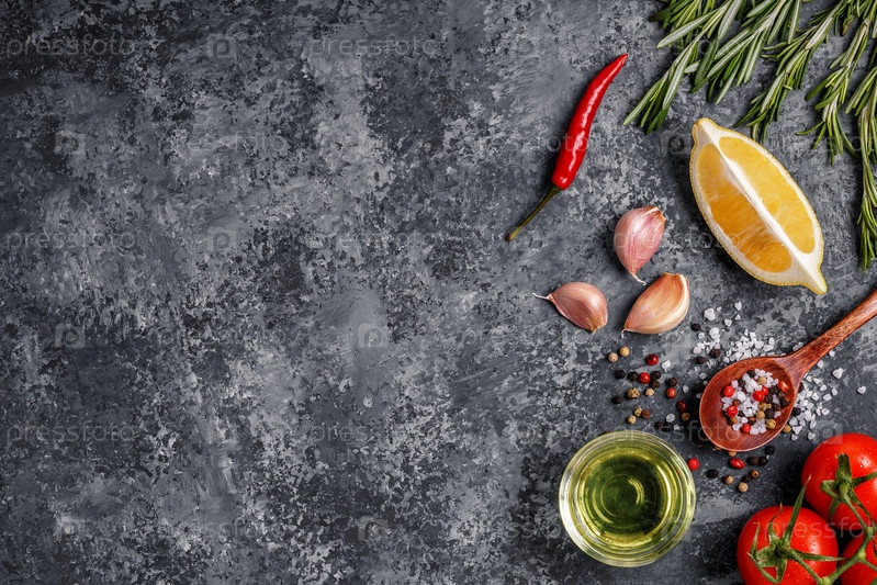 Фон со специями, травами и оливковым маслом