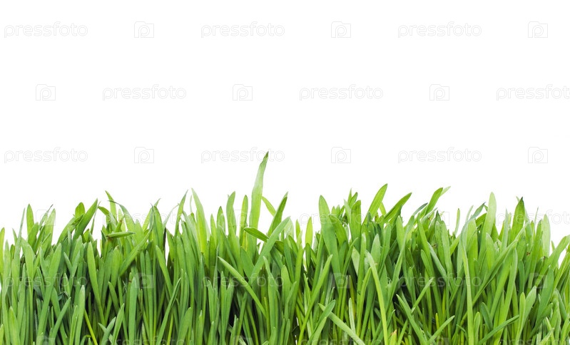 Зеленая трава на белом фоне