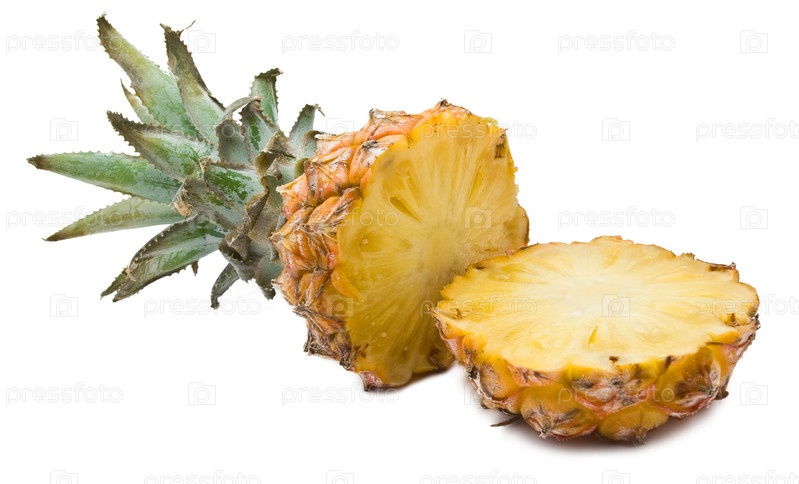 Разрезанный ананас, на белом фоне