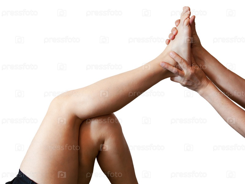 Мужские руки массируют женскую ногу