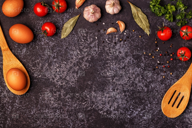Ингредиенты для приготовления пищи на темном бетонном фоне