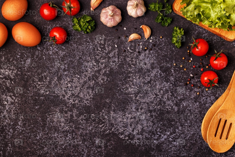 Ингредиенты для приготовления пищи на темном бетонном фоне