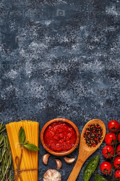 Фон итальянской кухни с макаронами, специями и овощами