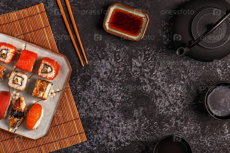 Суши-сет: суши и суши-роллы на тарелке