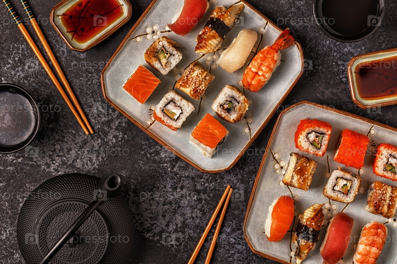 Суши-сет: суши и суши-роллы на тарелке