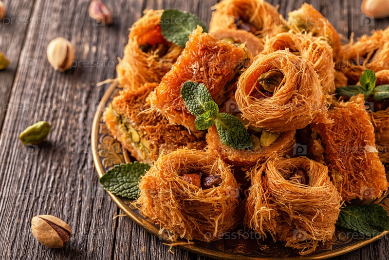 Восточные сладости на старом деревянном столе
