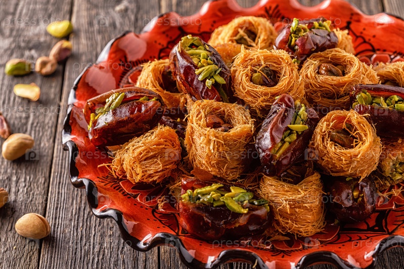 Восточные сладости на старом деревянном столе