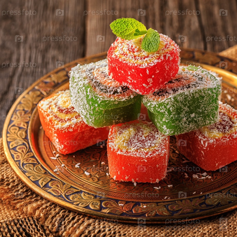 Рахат-лукум на темном деревянном фоне