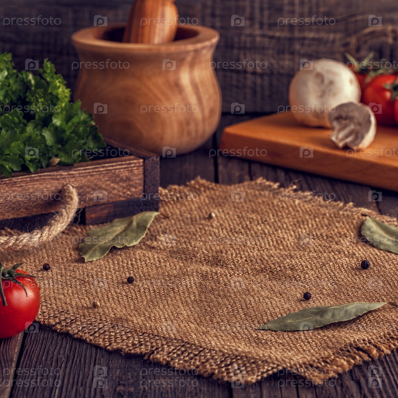 Овощи, травы, специи фон. Выборочный фокус