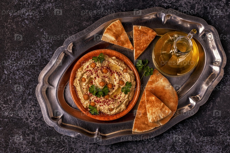 Классический хумус на тарелке