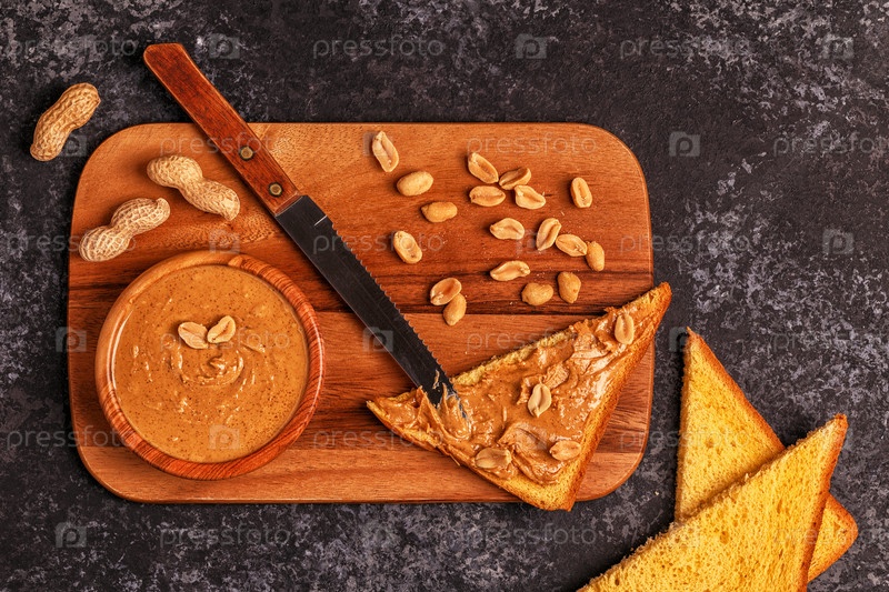 Чаша арахисового масла на деревянной доске