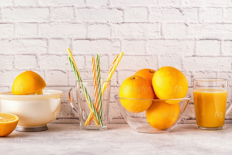 Апельсины и соковыжималка для приготовления апельсинового сока