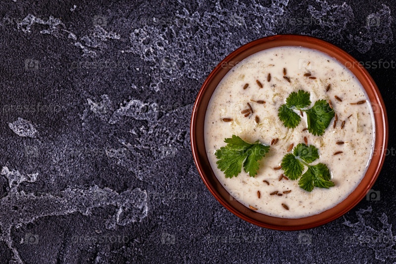 Традиционная индийская райта с огурцом, тмином и кориандром