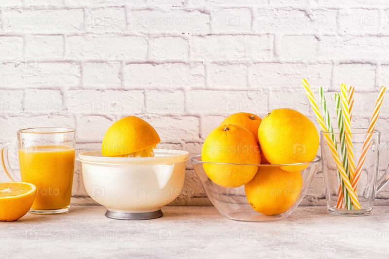 Апельсины и соковыжималка для приготовления апельсинового сока