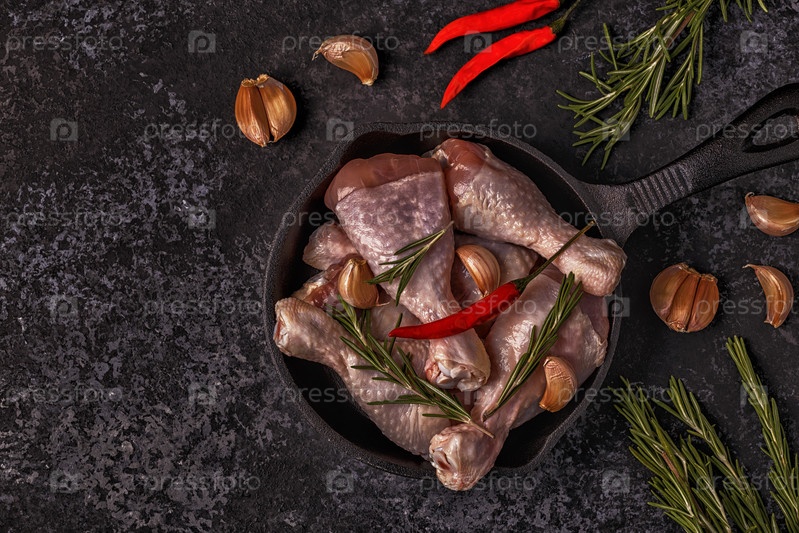Сырые куриные ножки с розмарином, чесноком и чили