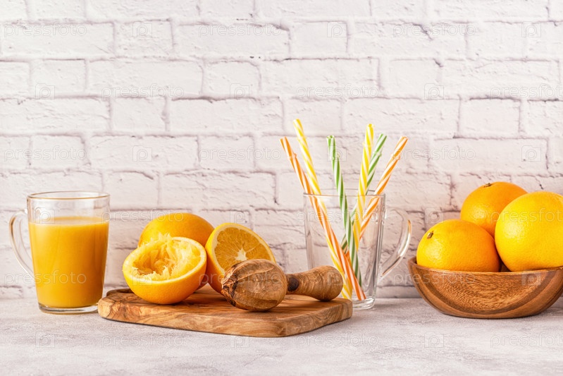 Апельсины и соковыжималка для приготовления апельсинового сока